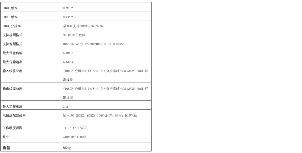 一路HDMI視頻信號輸入同步分成8路HDMI信號輸出,畫麵同步,高清無損,支持HDMI2.0,分辨率可達3840*2160@60hz