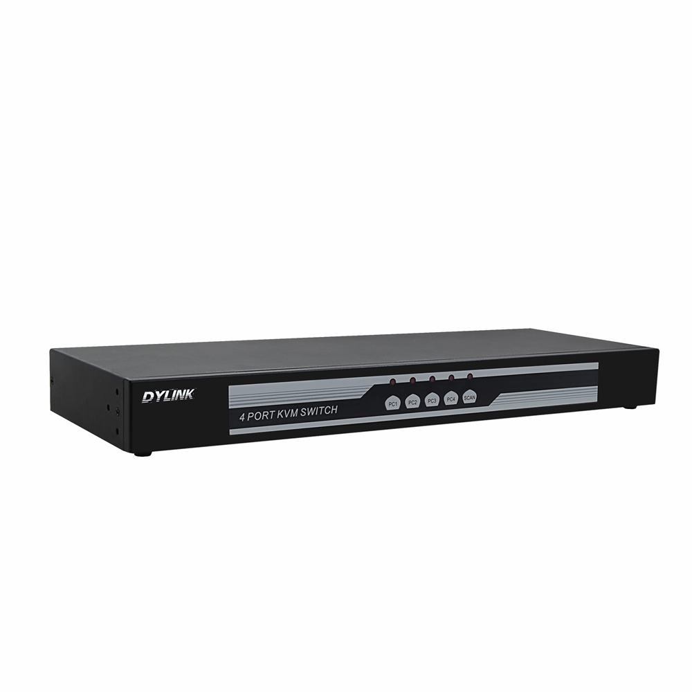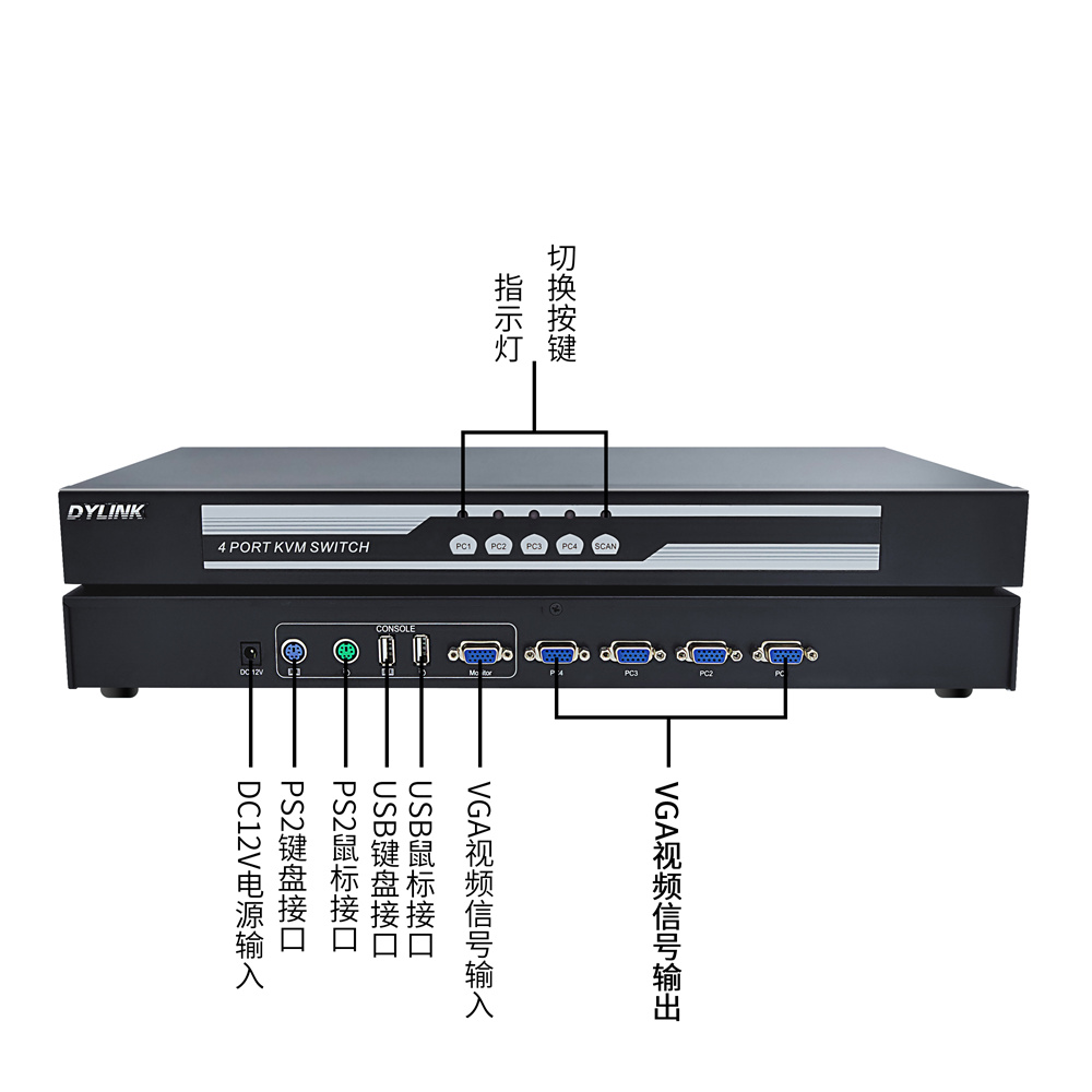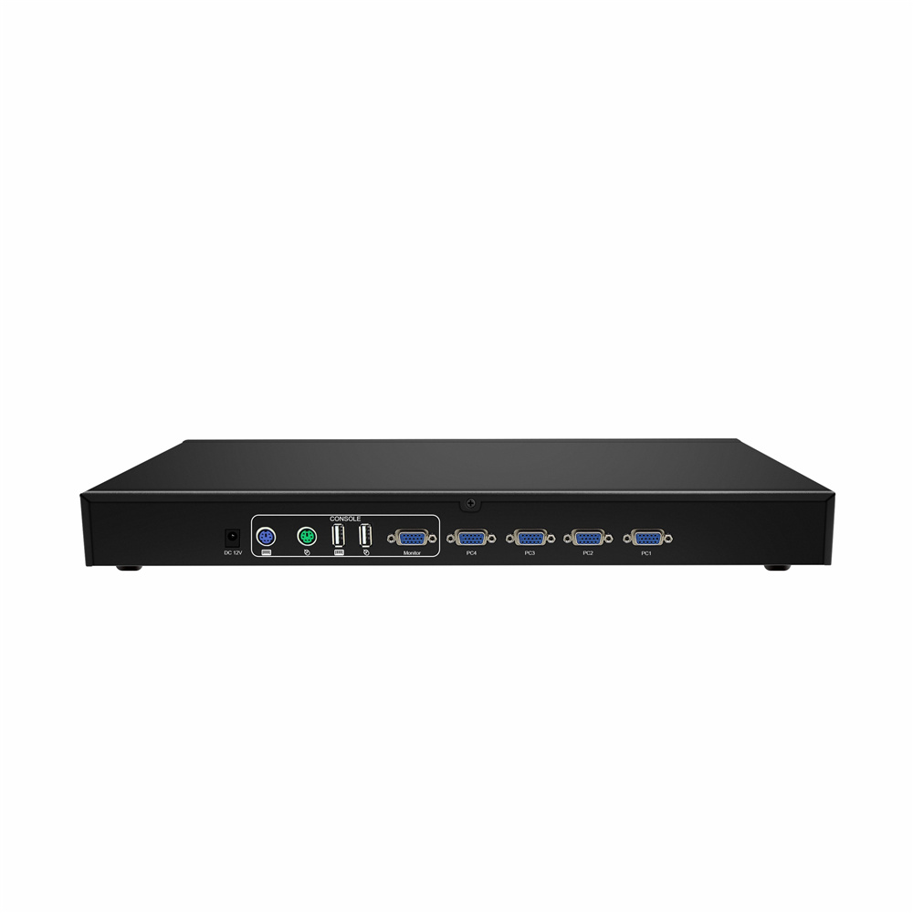 KVM USB 切換器4進1出,一套鍵鼠和顯示器可以控製4台VGA電腦設備,支持機架式安裝,2個PS2鍵鼠透傳和2個USB鍵鼠透傳,兼容主流操作係統,無需安裝驅動,即插即用0755 86120002