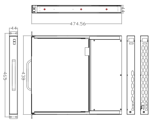 安裝機櫃 | 600-1040mm(標準掛耳長度:400 MM;650MM / 750MM可定製 ); 600MM機櫃可定製90度彎頭線 | |