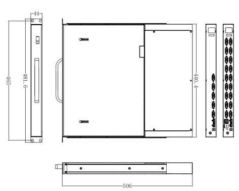 安裝機櫃 | 600-1040mm(標準掛耳長度:400 MM;650MM / 750MM可定製 ); 600MM機櫃可定製90度彎頭線 | |